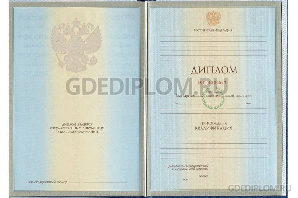 На нашем сайте Вы можете купить диплом специалиста любого ВУЗа Москвы, Санкт-Петербурга и других городов России. При изготовлении используются только настоящие бланки Гознак! Обращаем ваше внимание на то, что мы не делаем дипломы медицинских ВУЗов.